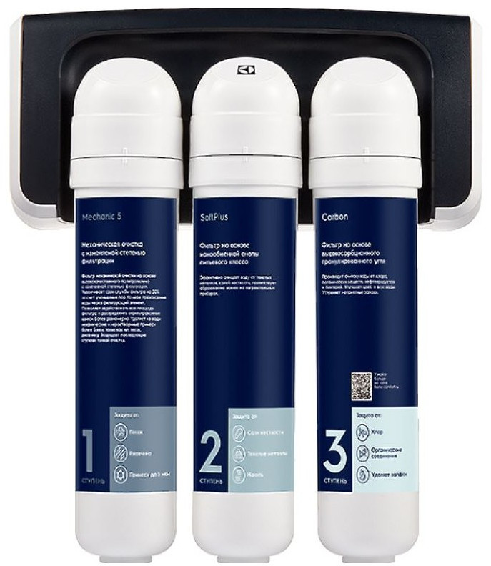 - Ступень механической очистки с градиентной структурой обеспечивает надежное удаление механических примесей, таких как песок, ил, ржавчина. Последующая ступень сорбционной очистки удаляет бактерии, хлор и хлорорганические примеси