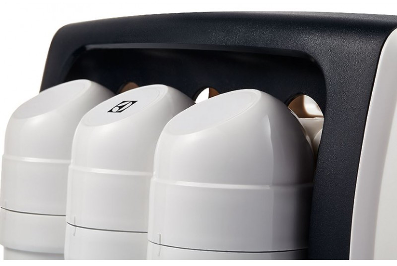 - Ступень очистки на основе ионообменной смолы питьевого качества обеспечивает надежное удаление солей жесткости препятствуя образованию накипи на нагревательных приборах