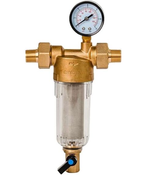 Фильтр Бастион 112 3/4" с манометром предназначен для предварительной очистки холодной воды от механических примесей - частиц ржавчины, волокон пеньки, песчинок, что способствует защите сантехники, бытовых установок от негативного воздействия воды. Фильтр состоит из корпуса и промываемого картриджа.