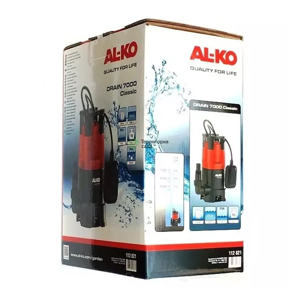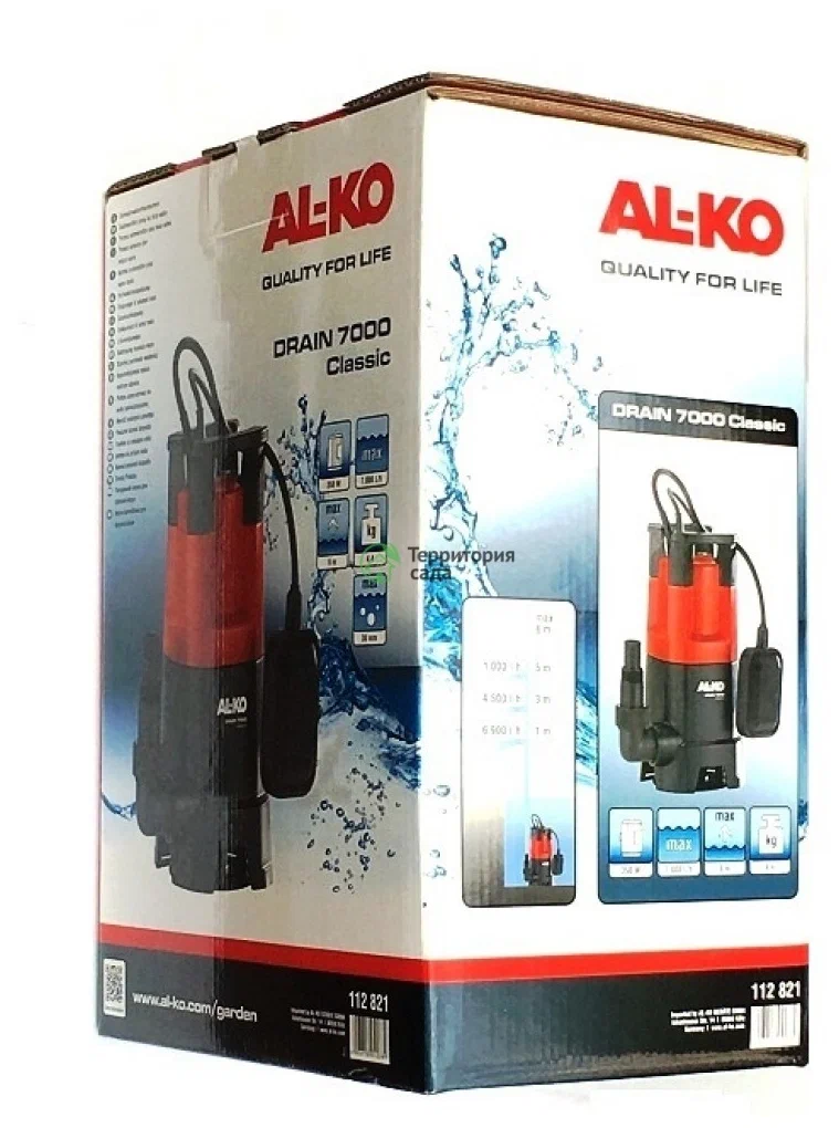 Насос дренажный AL-KO Drain 7000 Classic 117л/мин, напор 6м, 350Вт, частицы 30мм, 4.4кг [112821]