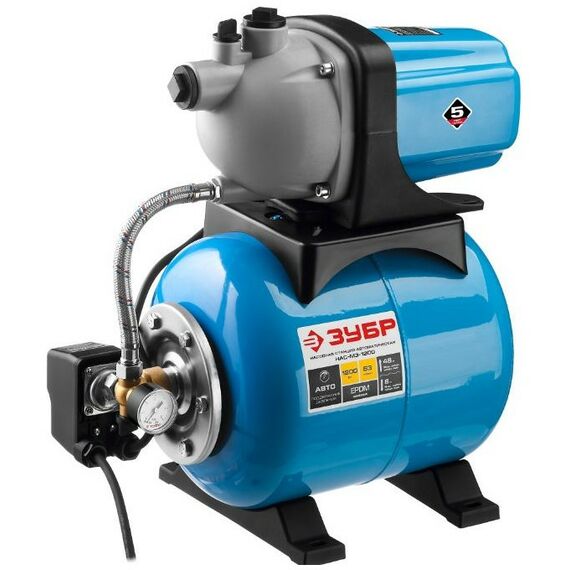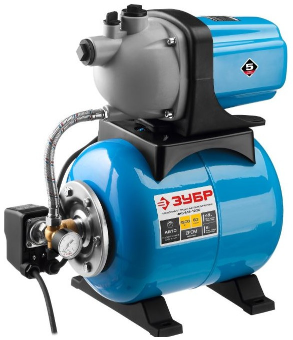 Автоматическая насосная станция Зубр НАС-М3-1200 1200 Вт, пропускная способность 63 л/мин, напор 46 м, бак 20 л