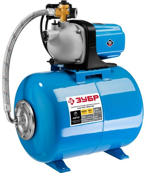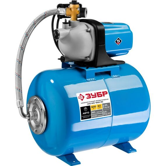 Автоматическая насосная станция Зубр НАС-М3-1200-50 1200Вт, пропускная способность 63л/мин, напор 46м, бак 50л