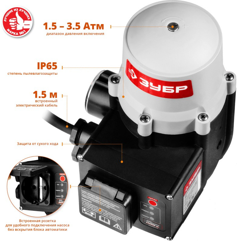 - Установка данного устрройства превращает практически любую систему водоснабжения на приусадебном участке в автоматическую с постоянным поддержанием давления. Работает с любым насосом (погружным, поверхностным, центробежным, вибрационным). Более правильный алгоритм отключения по контролю за расходом, а не давлением. ЗУБР - инновационные решения для Вашего комфорта.