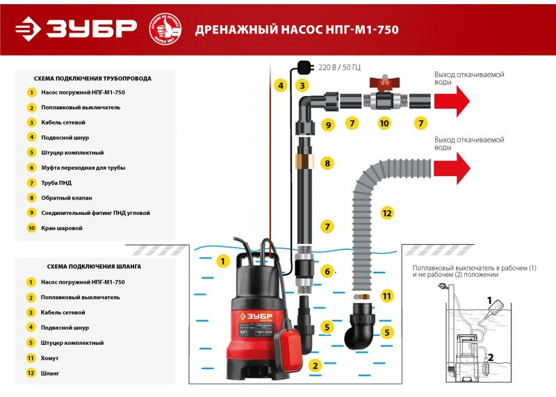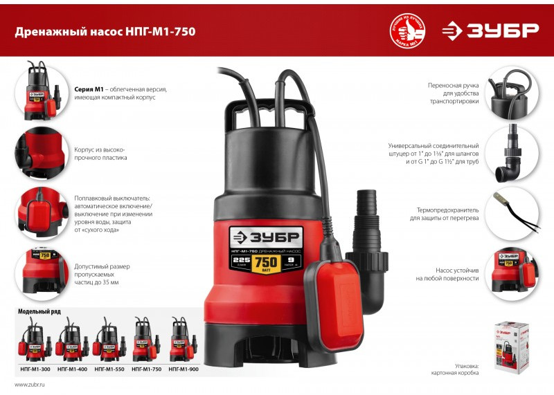 Дренажный насос для грязной воды Зубр НПГ-М1-750 750 Вт