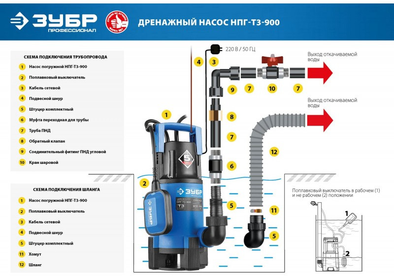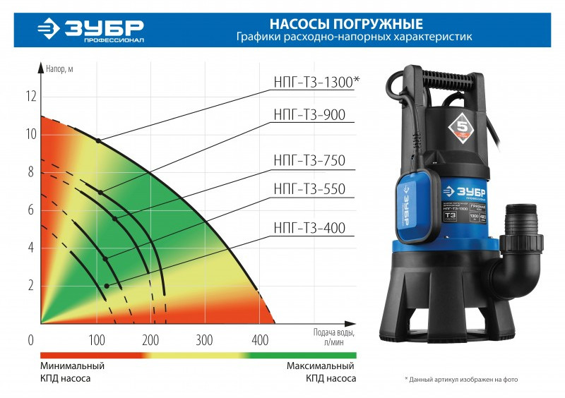 Дренажный насос для грязной воды Зубр Профессионал НПГ-Т3-900 900 Вт