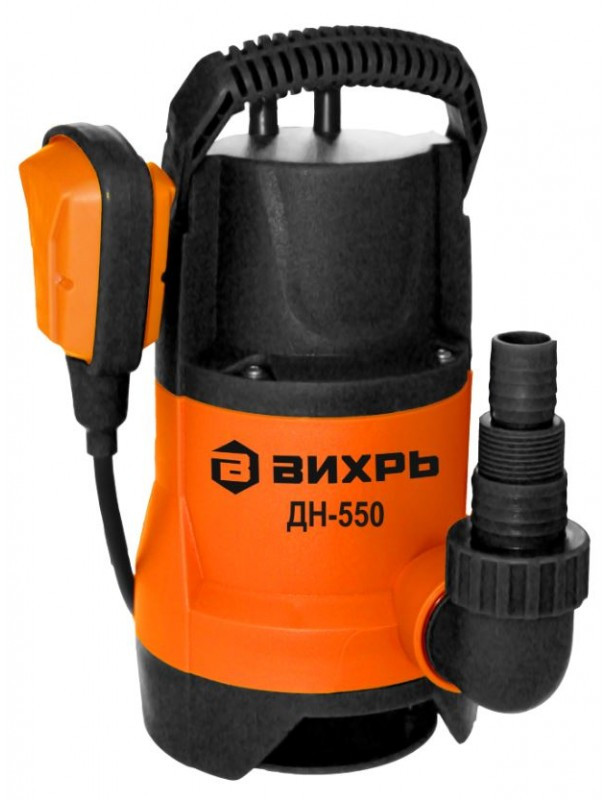 - Дренажный насос ВИХРЬ ДН-550 предназначен для откачивания и отведении воды и стоков с инородными примесями из различных водоёмов и резервуаров (котлованов, шахт, сливных ям и т.д). С их помощью можно выкачивать воду в случае подтопления жилых помещений и подвалов. Электродвигатель насоса асинхронный, однофазный с короткозамкнутым ротором. Максимальная глубина всасывания составляет не более 8 метров