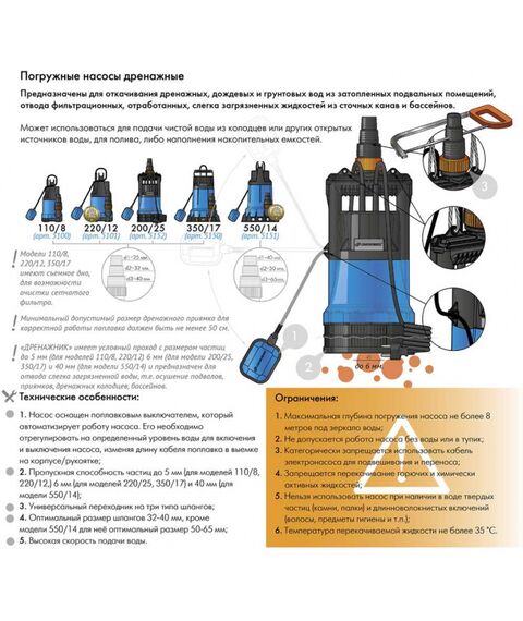 | Тип | Дренажный насос |