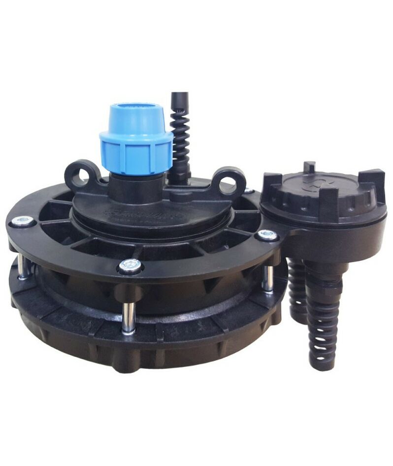 - Изготовлен из пластмассы, имеет "базовую часть", подходит для скважины с наружным диаметром обсадной трубы от 110 до 130 мм и напорной трубой ПНД диаметром 32 мм