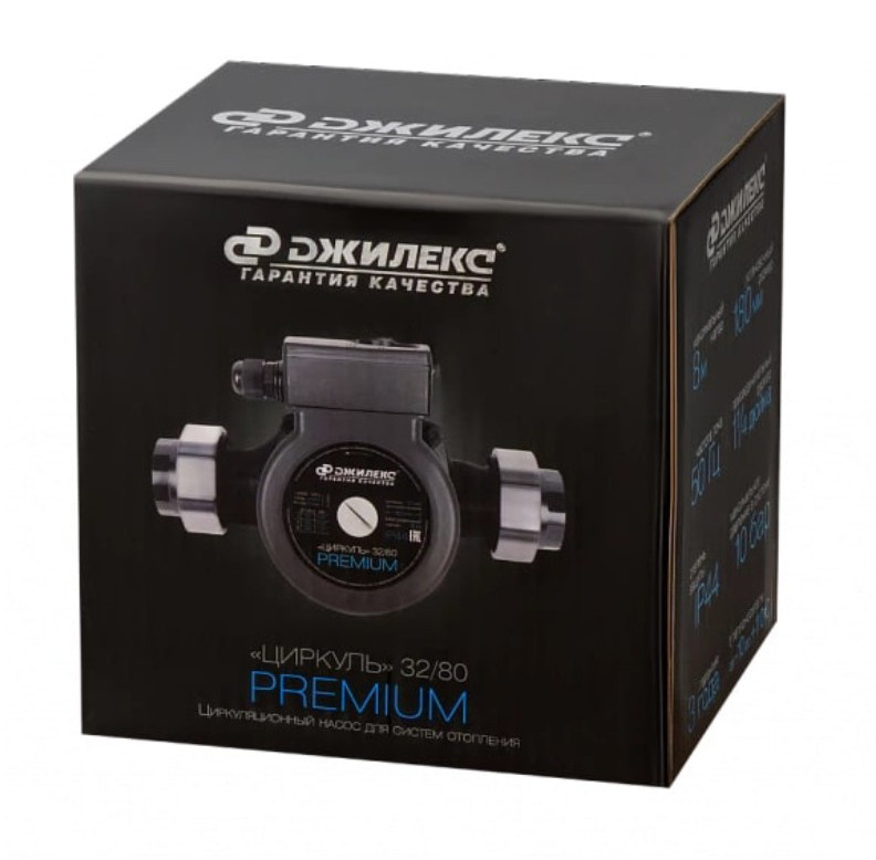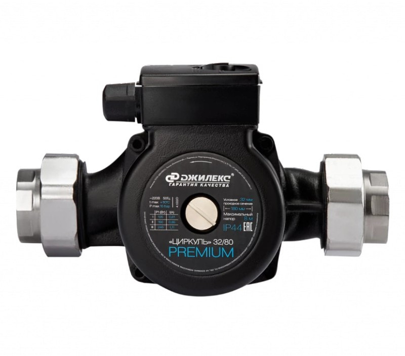 - Циркуляционный насос Джилекс Циркуль Премиум 32/80 предназначен для циркуляции воды или теплоносителя в системах отопления с присоединительным размером гайки 1 1/4 дюйм (32 мм) и максимальным напором 8 метров (80 дм)