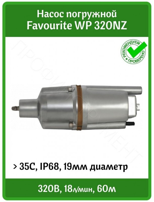 - Вибрационный насос FAVOURITE с термозащитой, нижний забор WP 320NZ предназначен для перекачивания воды из водоемов, колодцев и резервуаров диаметром более 100 мм