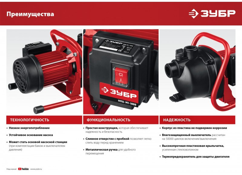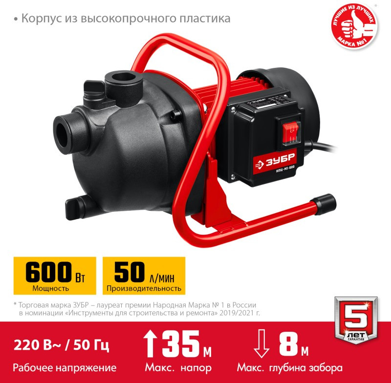 Поверхностный насос Зубр НПЦ-М1-600 600 Вт