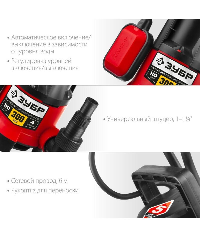 Дренажный насос для грязной воды Зубр НПГ-М1-300 300 Вт