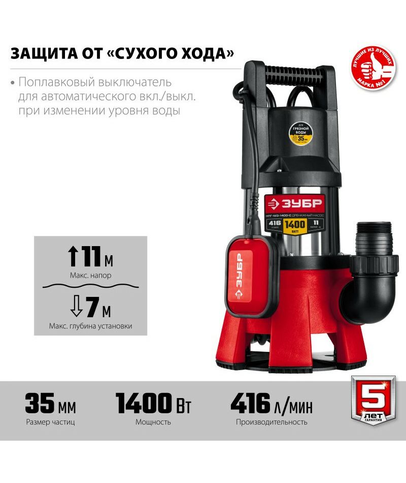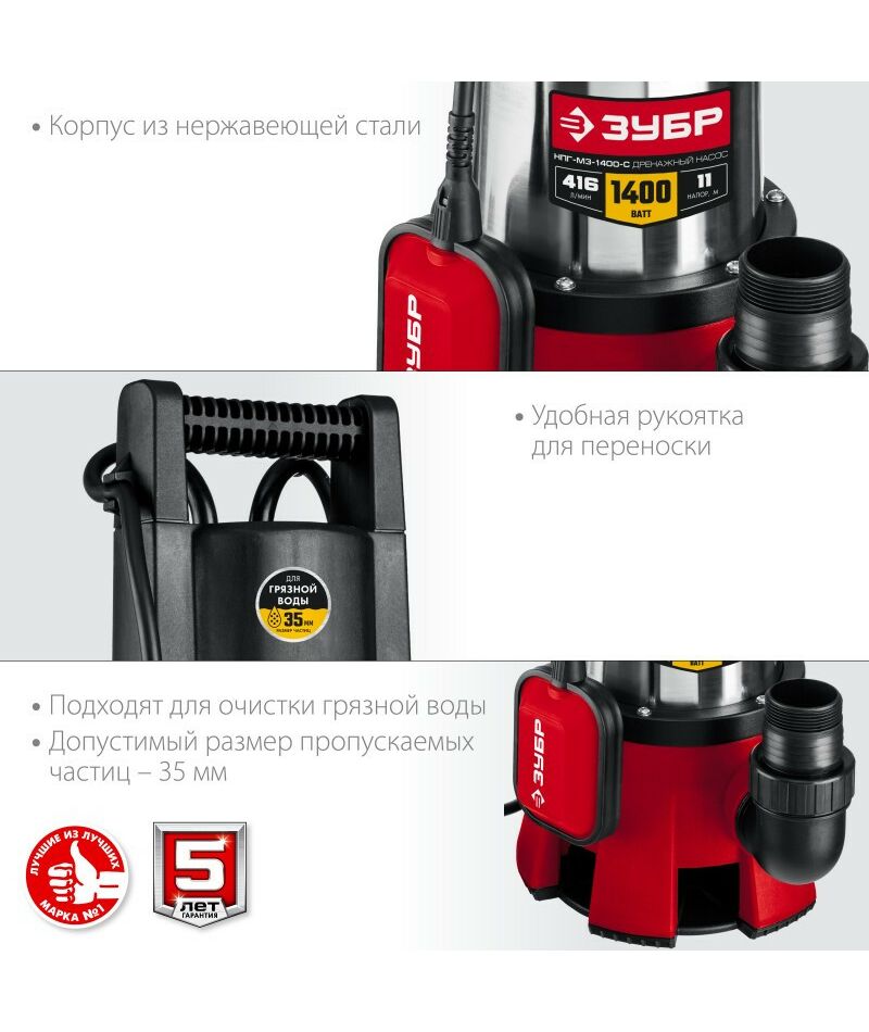 Дренажный насос для грязной воды Зубр НПГ-М3-1400-С корпус - нерж. сталь, 1400 Вт