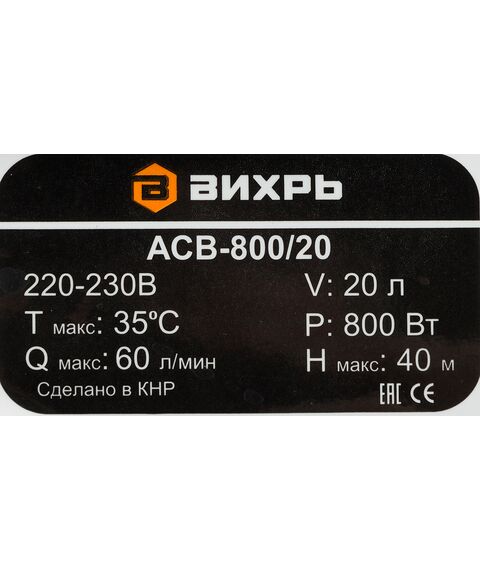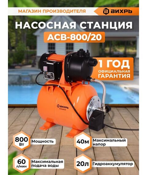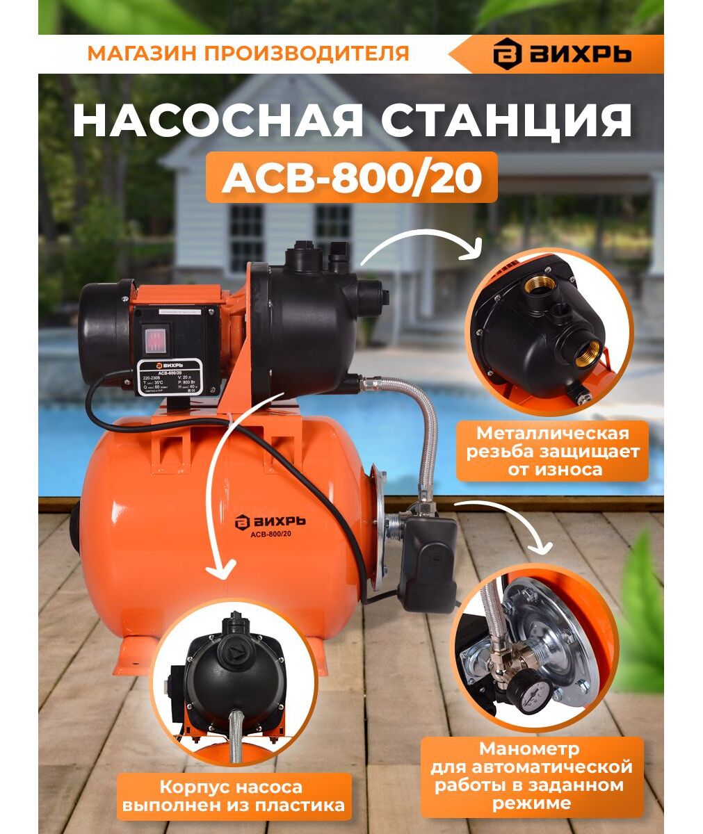 Насосная станция напорный Вихрь ACB-800/20 800Вт 3600л/час