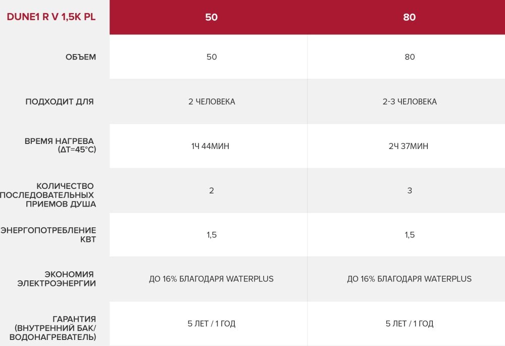 | Объем емкости для воды | 80 л |
