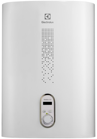- Современные водонагреватели Gladius 2.0 имеют уникальную плоскую форму, электронное управление и LED-дисплей. Объем бака рассчитан на 2-х пользователей (при среднем расходе). Приборы серии легко разместить в ограниченном пространстве, ими удобно управлять, они надежно защищены многоступенчатой системой безопасности. Долговечность и высокое качество прибора подтверждает рекордная гарантия на внутренний бак — 7 лет. Как и другие продукты Electrolux водонагреватели серии Gladius 2.0 сделаны с заботой о Вашем здоровье