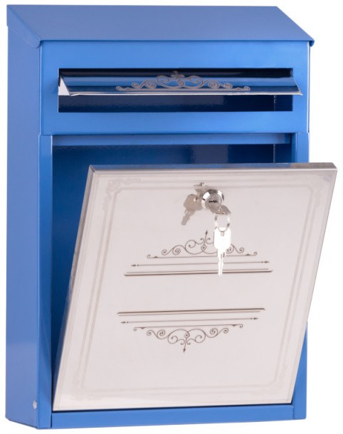 Почтовый ящик Элит дизайнерский синий с лазерной гравировкой
