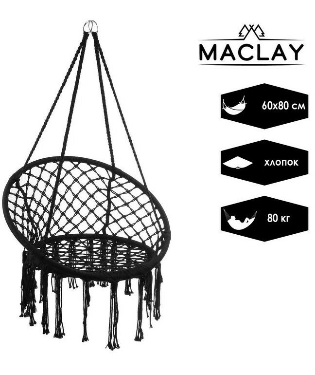 Гамак-кресло подвесное плетёное 60 х 80 см цвет чёрный
