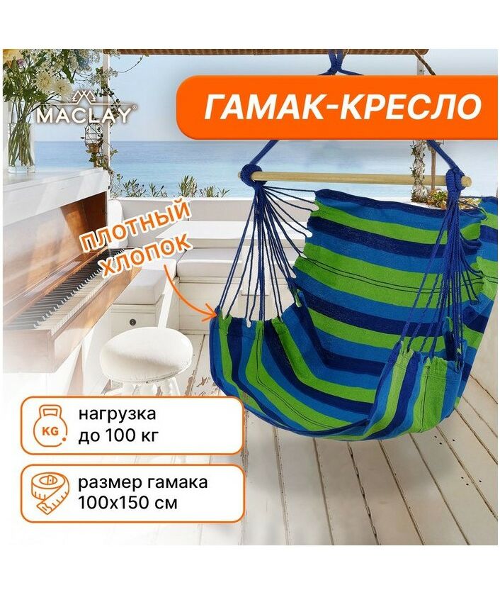 Гамак-кресло со спинкой Maclay 100х150х130 см цвет МИКС