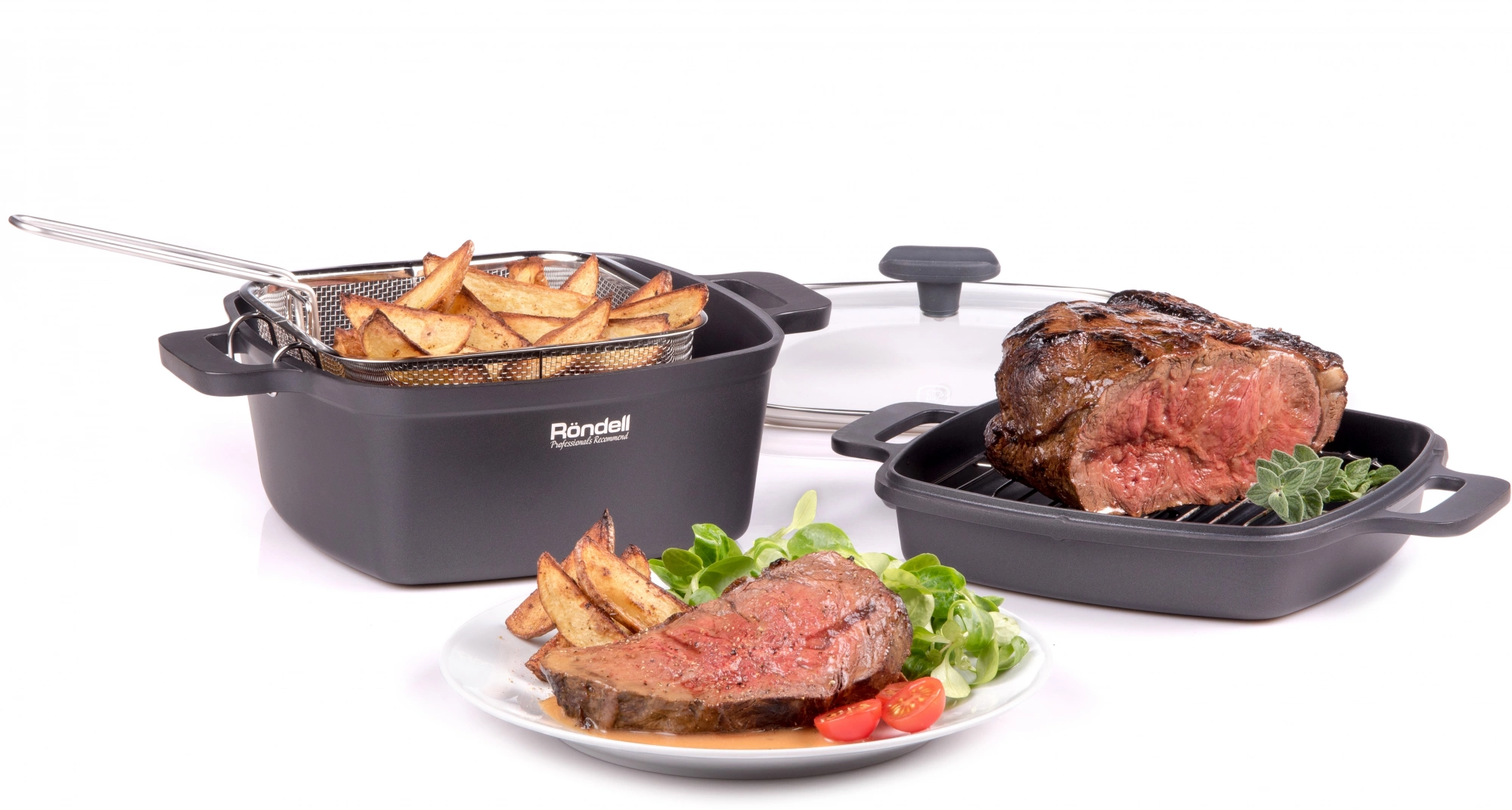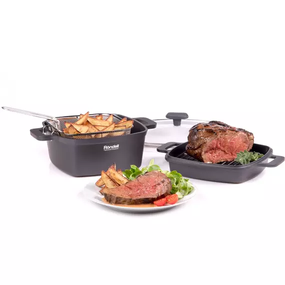 Коллекция I-unique — настоящая находка для продвинутых любителей кулинарии. Набор позволит приготовить множество блюд. Поместив решетку для запекания в кастрюлю, Вы сможете приготовить сочные стейки, рыбу или запечь овощи. Сковороду–гриль можно использовать и как посуду для томления блюд в духовке.