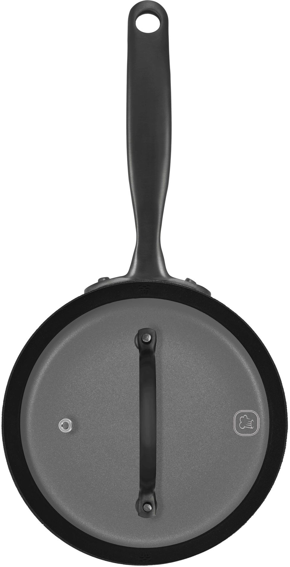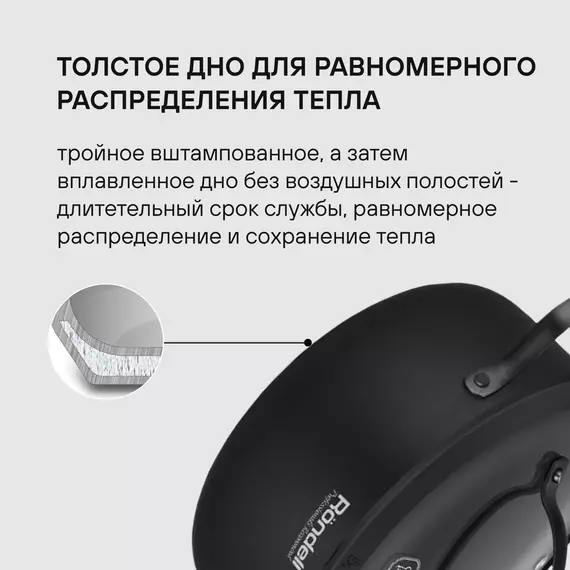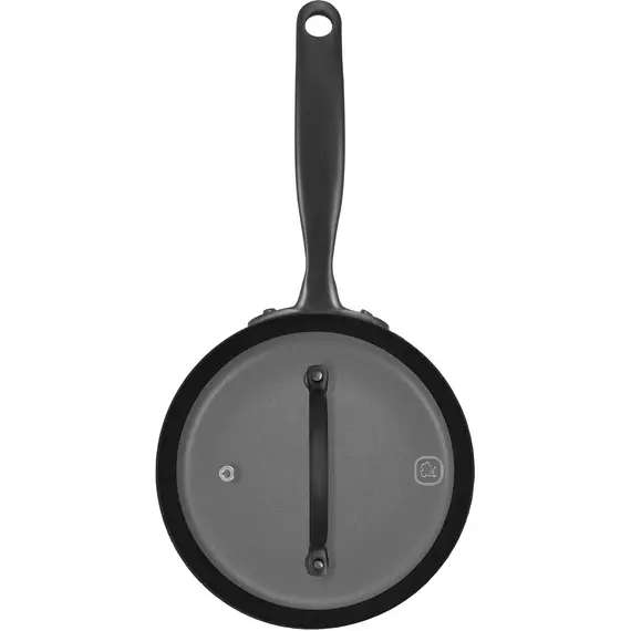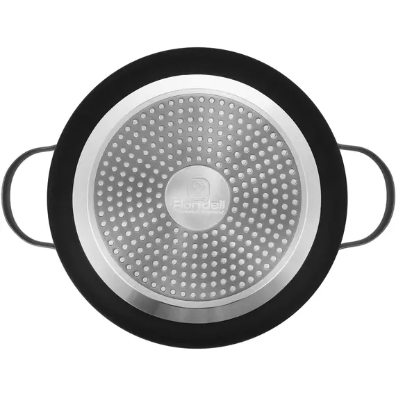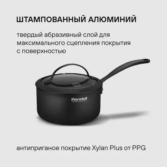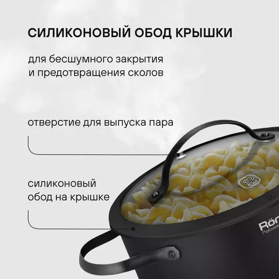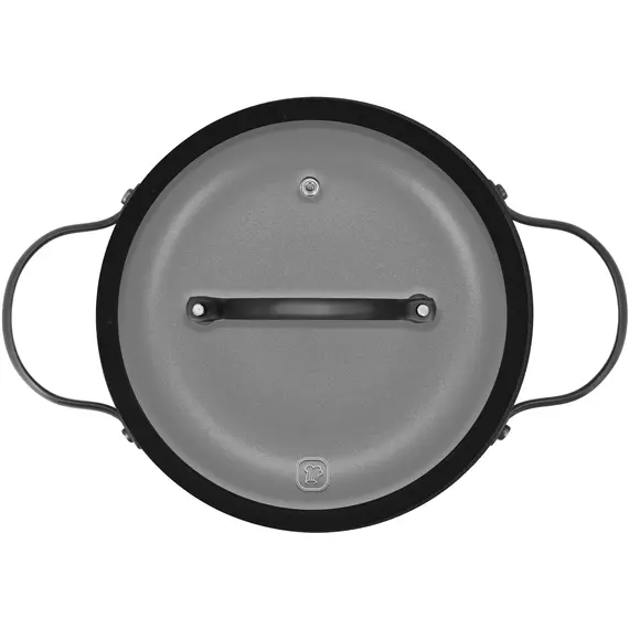 | Особенности | Материал: штампованный алюминий. Внутреннее покрытие: Xylan® Plus. Толщина стенок: 2,5 мм. Толщина дна: 2,5 мм. Изящные аксессуары из нерж. стали с черным невероятно долговечным покрытием PVD. Эргономичная форма ручек; силиконовый ободок крышки для бесшумного закрытия и предотвращения сколов. |