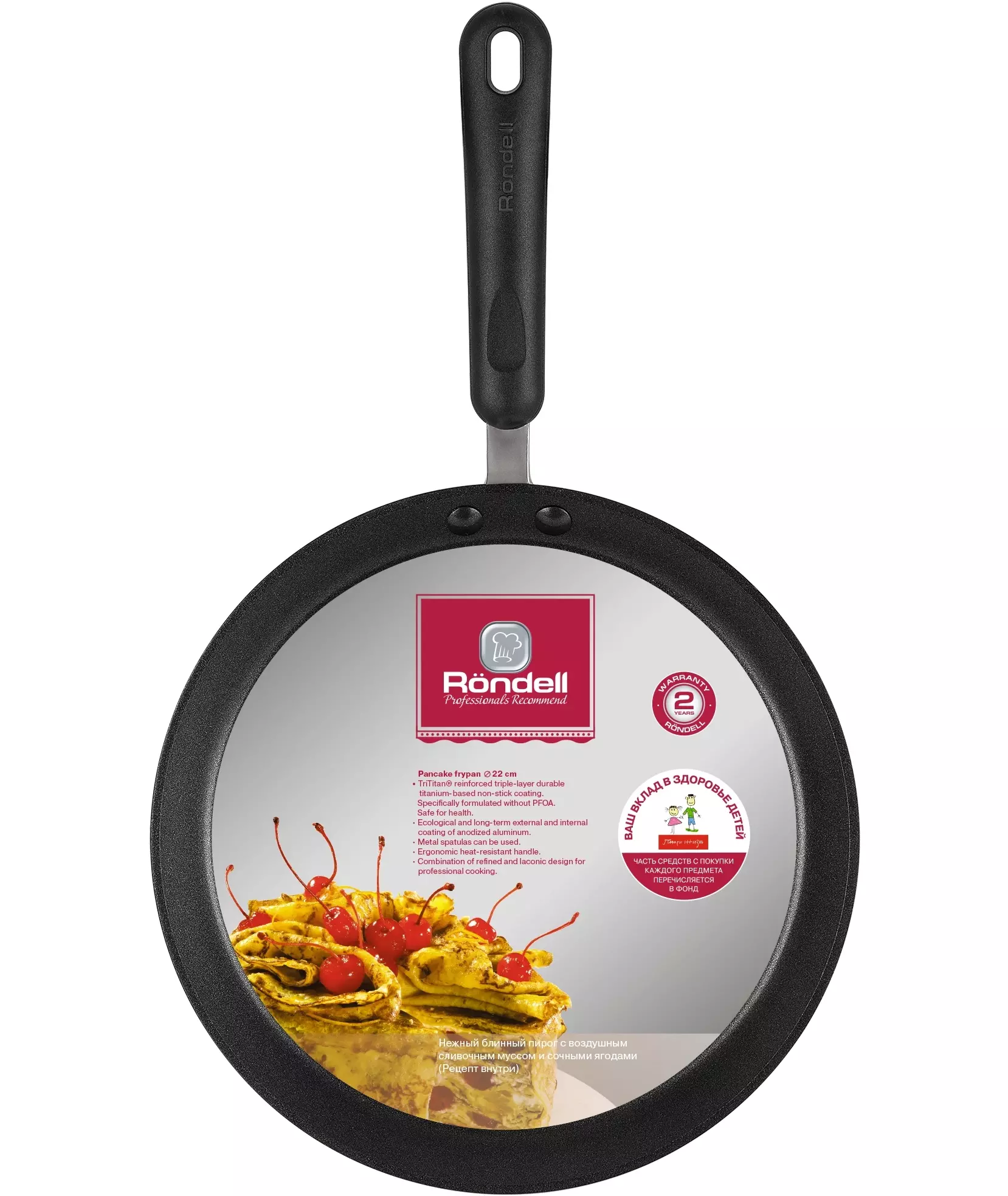 Сковорода Rondell Pancake frypan круглая 22см покрытие: TriTitan ручка несъемная (без крышки) черный [RDA-274]