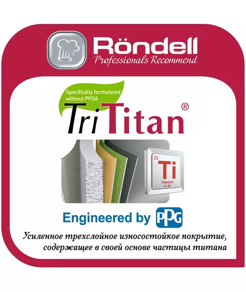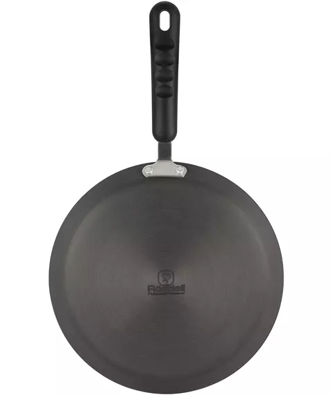 | Особенности | Технология: двустороннее анодирование - 39-44 мкн, исключает взаимодействие пищи с алюминием. Аксессуары: прочная бакелитовая ручка. Преимущества: возможно использование металлических лопаток. Упаковка: термопленка; Картонная подложка. Подарок: рецепт на упаковке. |