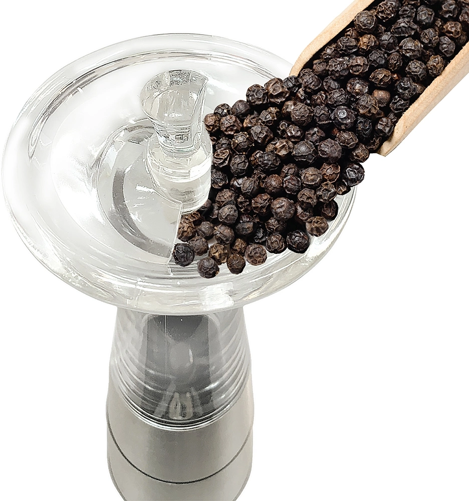 Механическая мельница Temper изготовлена из высококачественной нержавеющей стали и акрила. Она оснащена надежным керамическим механизмом, который способен обеспечить несколько степеней помола соли (в том числе морской) и горошин перца.