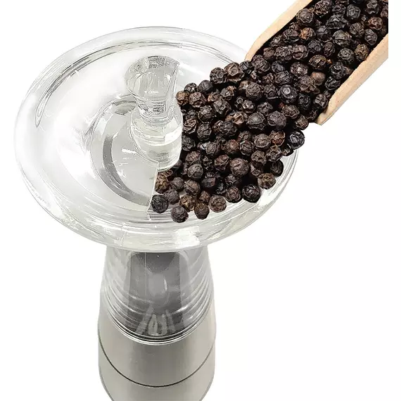 | Особенности | Материал: акрил, нержавеющая сталь. Преимущества: керамический механизм помола. Прозрачный контейнер для морской соли и перца горошком. Регулировка помола. Широкий ободок - удобное наполнение емкости. Объем – 65 гр перца горошком. Предназначен для измельчения перца-горошка и крупной морской соли |