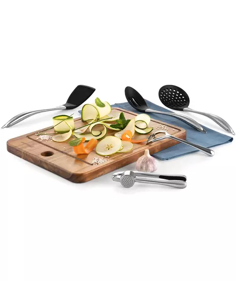 Кухонные гаджеты коллекции Modern (пресс для чеснока, овощечистки, ключ для консервных банок) изготовлены из цинкового сплава с хромированным покрытием, а функциональная часть овощечисток — из нержавеющей стали, что гарантирует им особую долговечность.