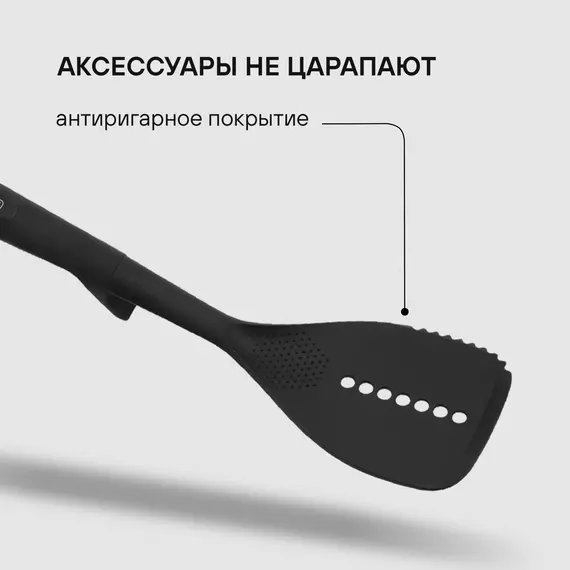 | Состав набора | В набор входят: половник, ложка, лопатка перфорированная, шумовка, картофелемялка и вращающийся стенд |