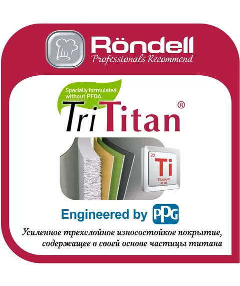 | Особенности | Аксессуары: из бакелита с покрытием Soft Touch. Преимущества: специальное внешнее термостойкое покрытие для легкого ухода; Xylan® Plus – двухслойное, долговечное антипригарное покрытие для интенсивного использования. Упаковка: картонный рукав. |