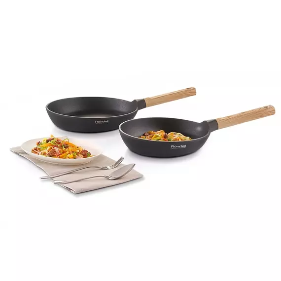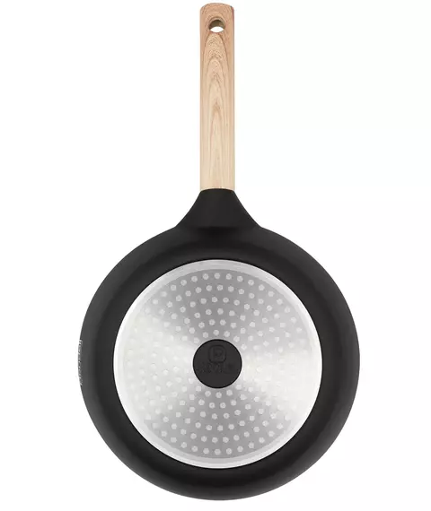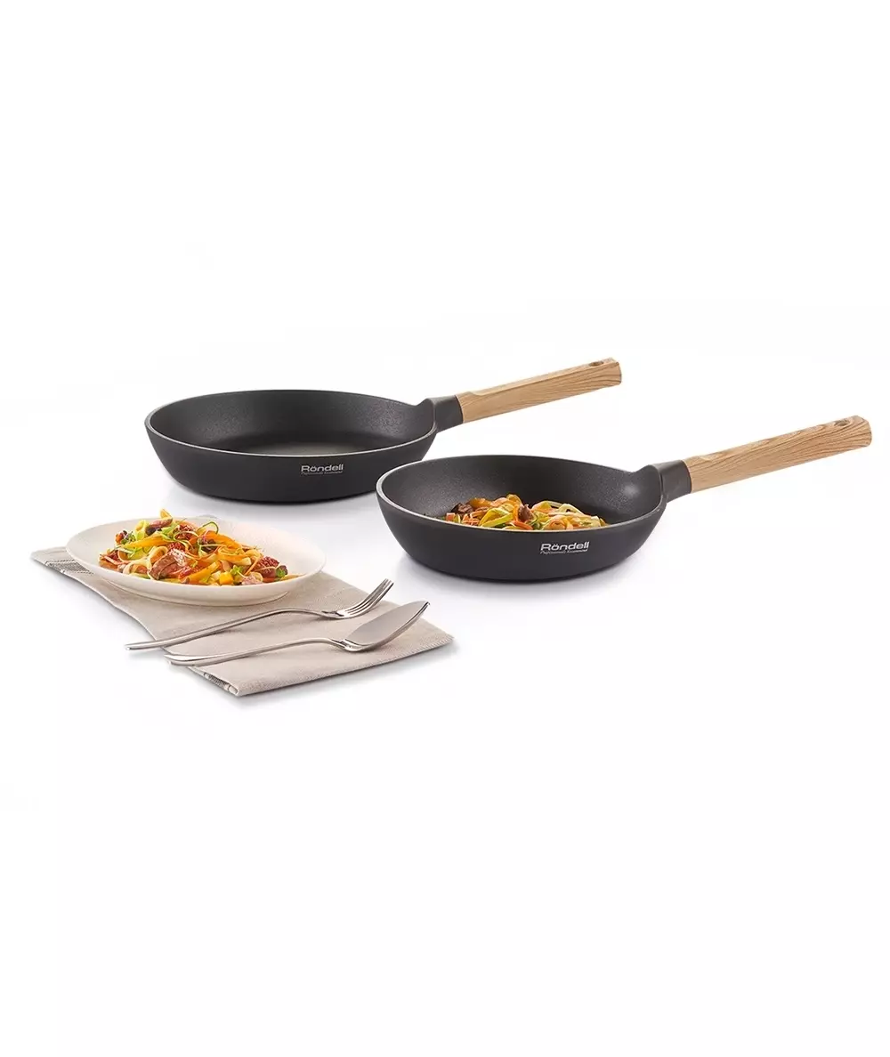 | Особенности | Технология: специальная фактурная обработка внутренней поверхности. Аксессуары: из бакелита, с покрытием Soft Touch. Преимущества: оригинальная форма корпуса для удобства переворачивания блюда. Упаковка: картонный рукав. |