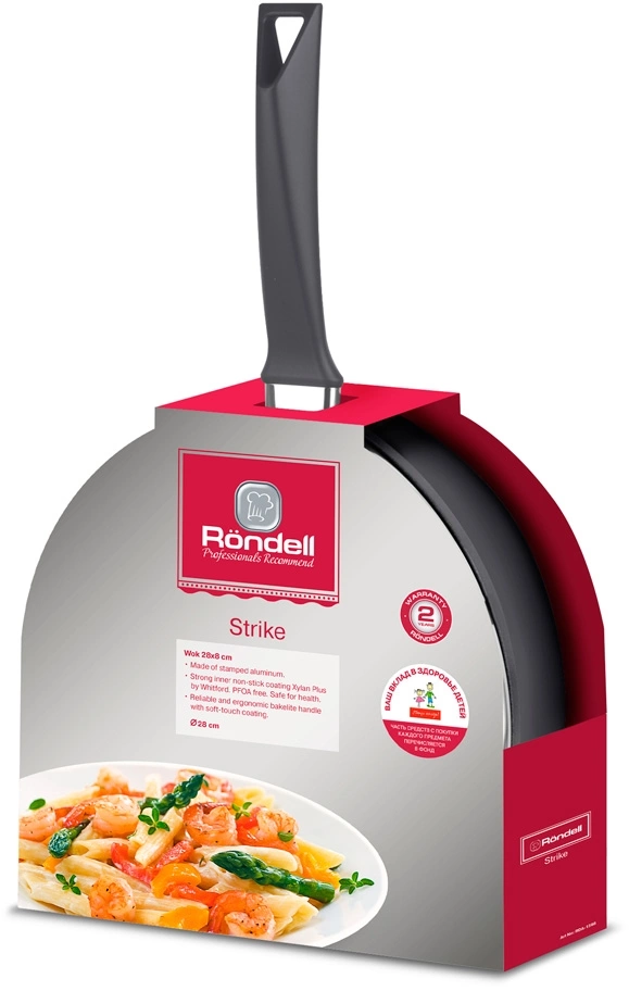 Сковорода ВОК (WOK) Rondell RDA-1398 Strike круглая 28см покрытие: Xylan Plus ручка несъемная (без крышки) серый