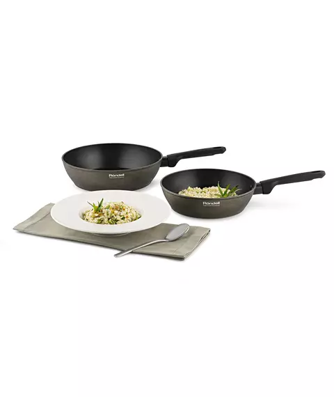 | Особенности | Аксессуары: из бакелита с покрытием Soft Touch. Преимущества: специальное внешнее термостойкое фактурное покрытие Skinlare для легкого ухода; Xylan® Plus – двухслойное, долговечное антипригарное покрытие для интенсивного использования. Упаковка: картонный рукав. |