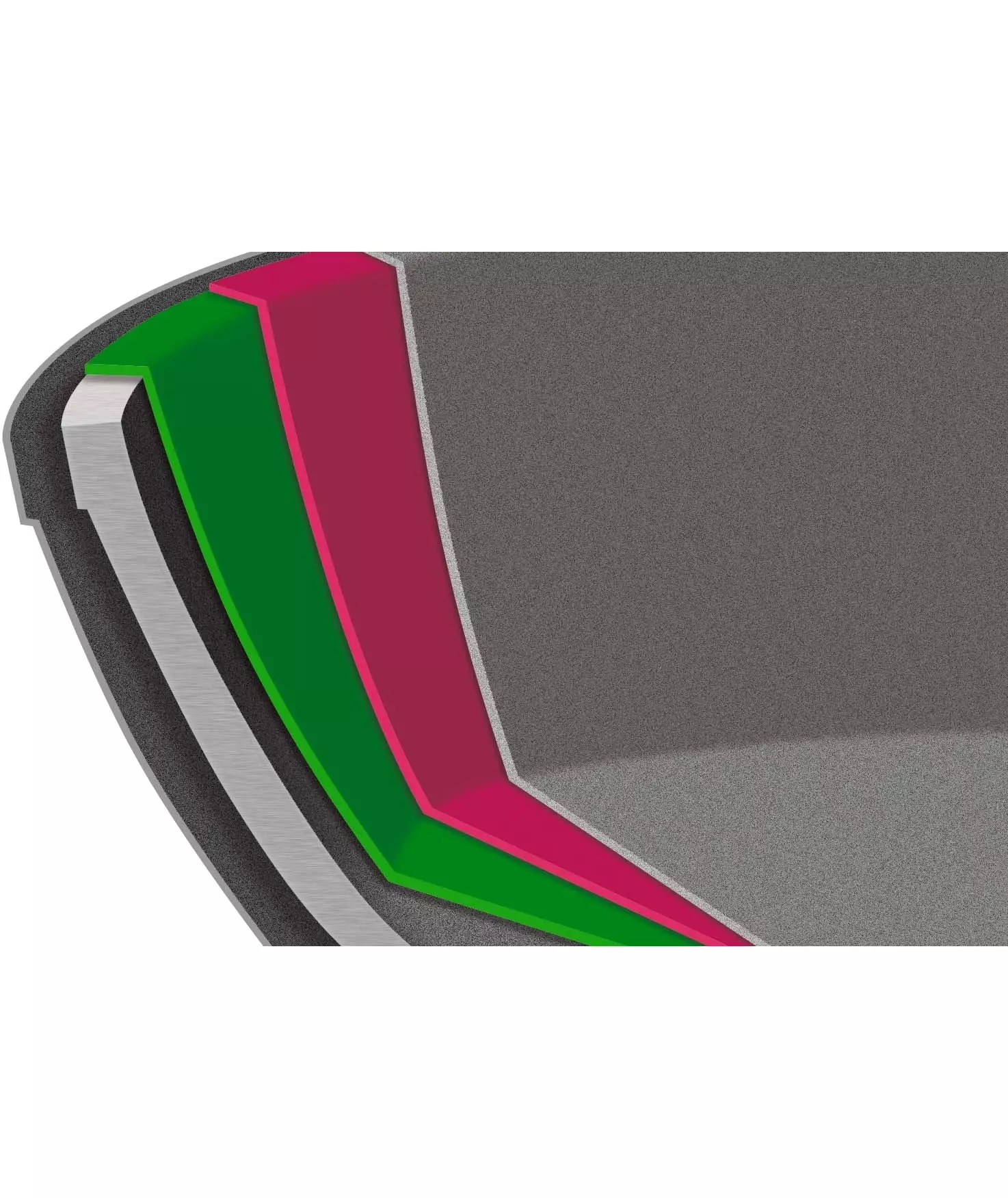 | Особенности | Аксессуары: из бакелита, с покрытием Soft Touch. Преимущества: специальное внешнее термостойкое покрытие для легкого ухода; Eclipse® HB – усиленное трехслойное антипригарное покрытие для интенсивного использования. Упаковка: картонный рукав. |