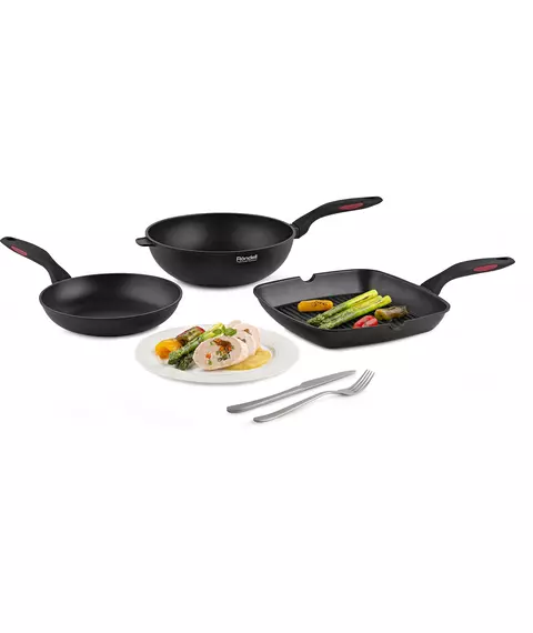 В состав коллекции Perfect входят четыре универсальные сковороды, сковорода-гриль и вок, которые способны безупречно выполнять все кулинарные задачи, будь то тушение, томление или жарка. Стильная посуда, выполненная в неоклассическом дизайне, изготовлена из долговечного и надежного литого алюминия.