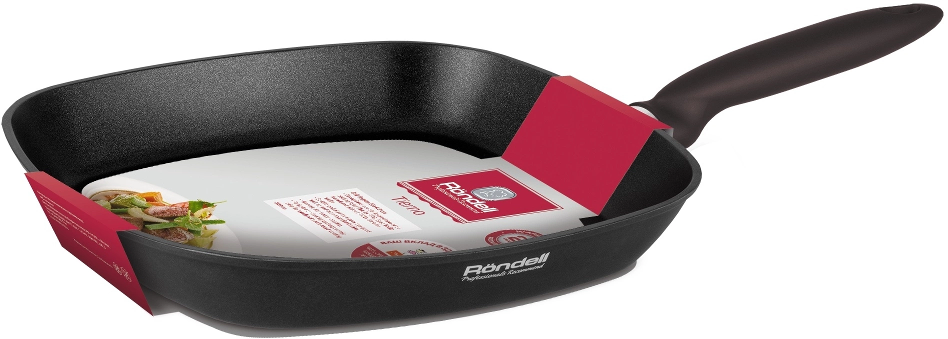 Сковорода-гриль Rondell RDA-1579 квадратная 28см покрытие: Xylan Plus ручка несъемная (без крышки) черный