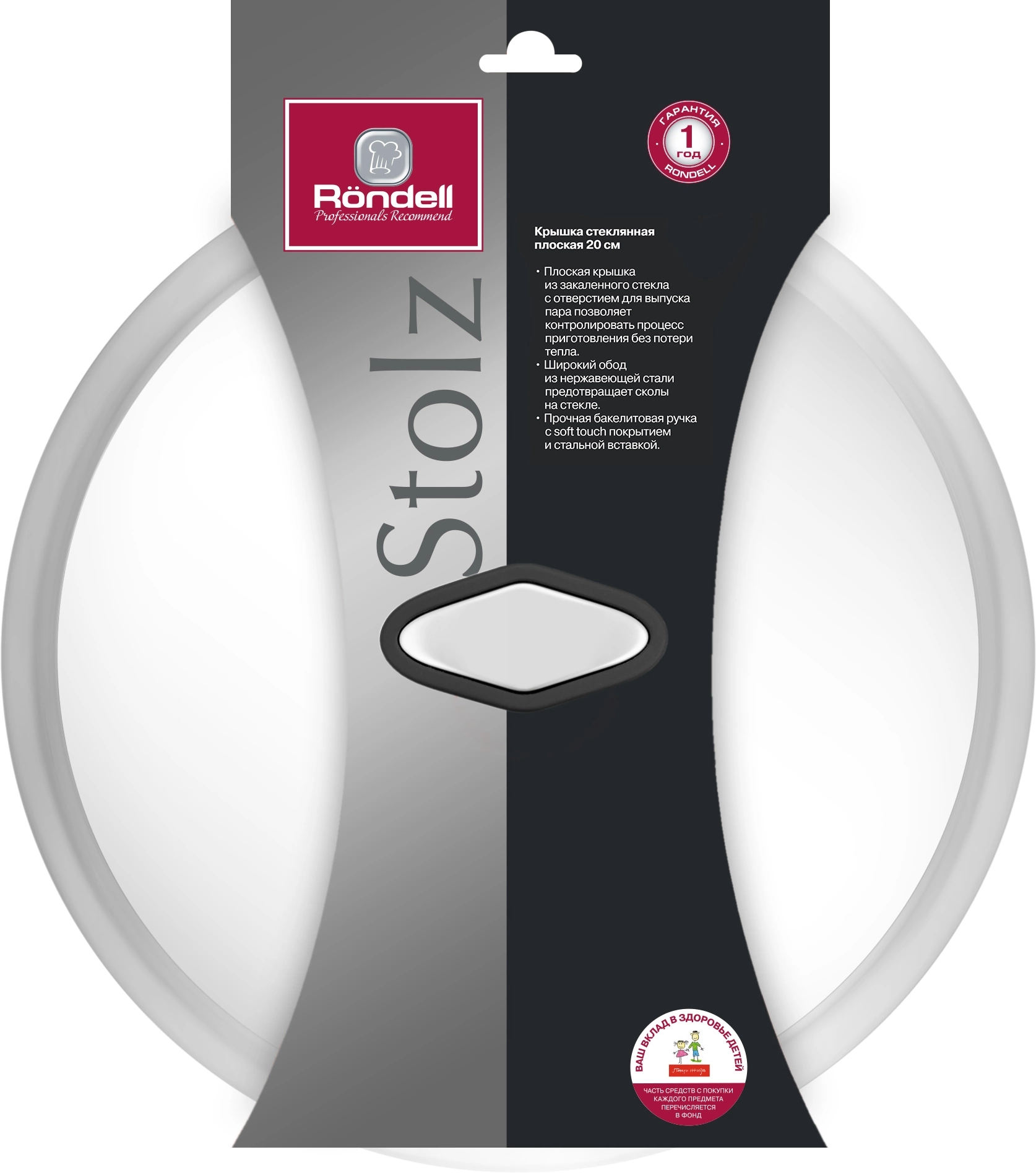 Крышка Rondell RDA-1783 d=20см крыш.прозрачный руч.черная