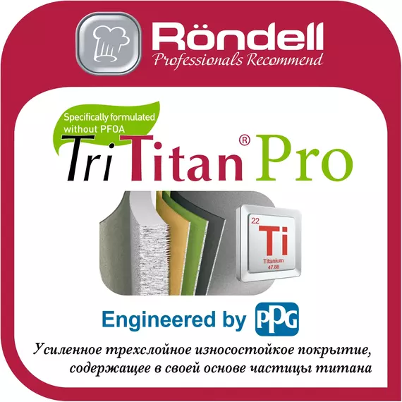 Сковорода Rondell RDA-1841 круглая 26см покрытие: TriTitanPRO ручка несъемная (без крышки) черный