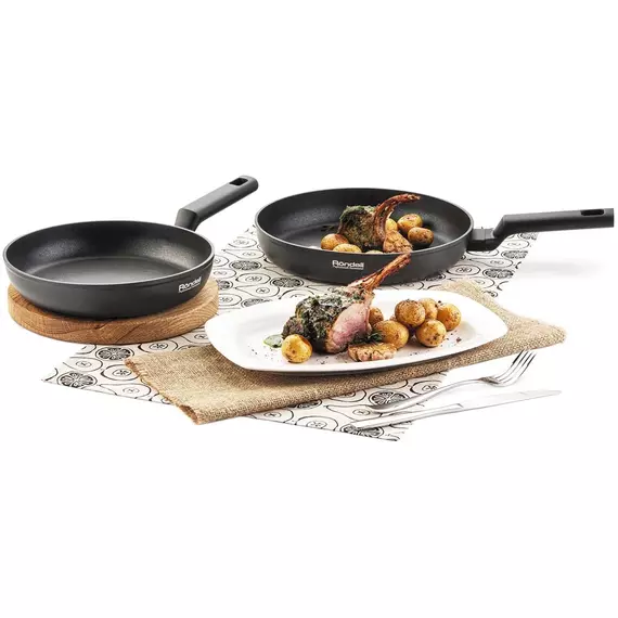 | Особенности | Ручки из бакелита с покрытием Soft Touch. Преимущества: Цельный индукционный диск – уникальная технология обеспечивает быстрый и равномерный нагрев посуды, долговечность использования и предотвращает окисление алюминия в ПММ. Наличие сливов позволяет контролировать объем жидкости во время тушения. |