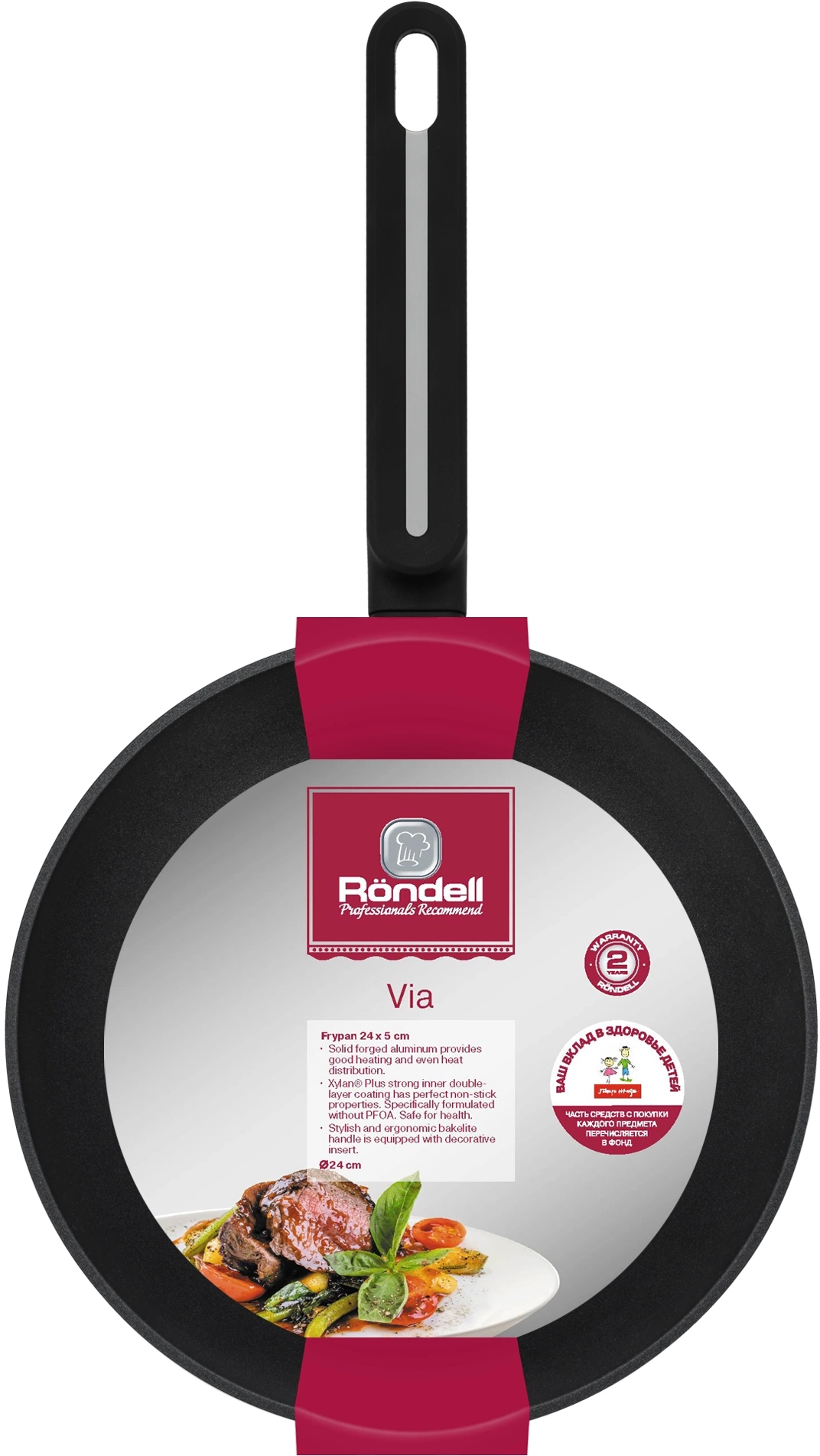 | Особенности | Аксессуары: стильная ручка из бакелита с декоративной вставкой. Преимущества: специальное внешнее термостойкое покрытие для легкого ухода; Xylan® Plus – двухслойное, долговечное антипригарное покрытие для интенсивного использования. Упаковка: картонный рукав. |