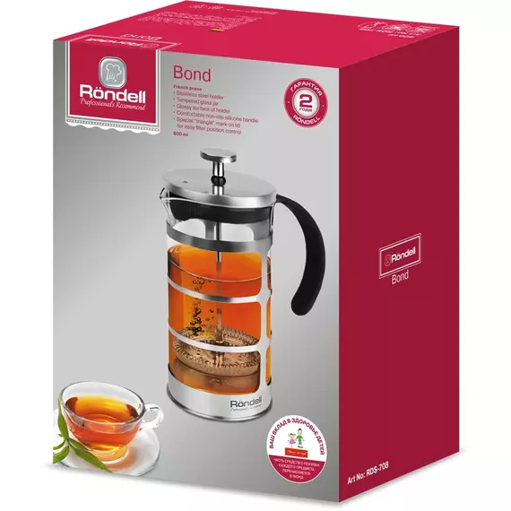 Френч-пресс Rondell RDS-708 Bond 0.6л стальной/черный