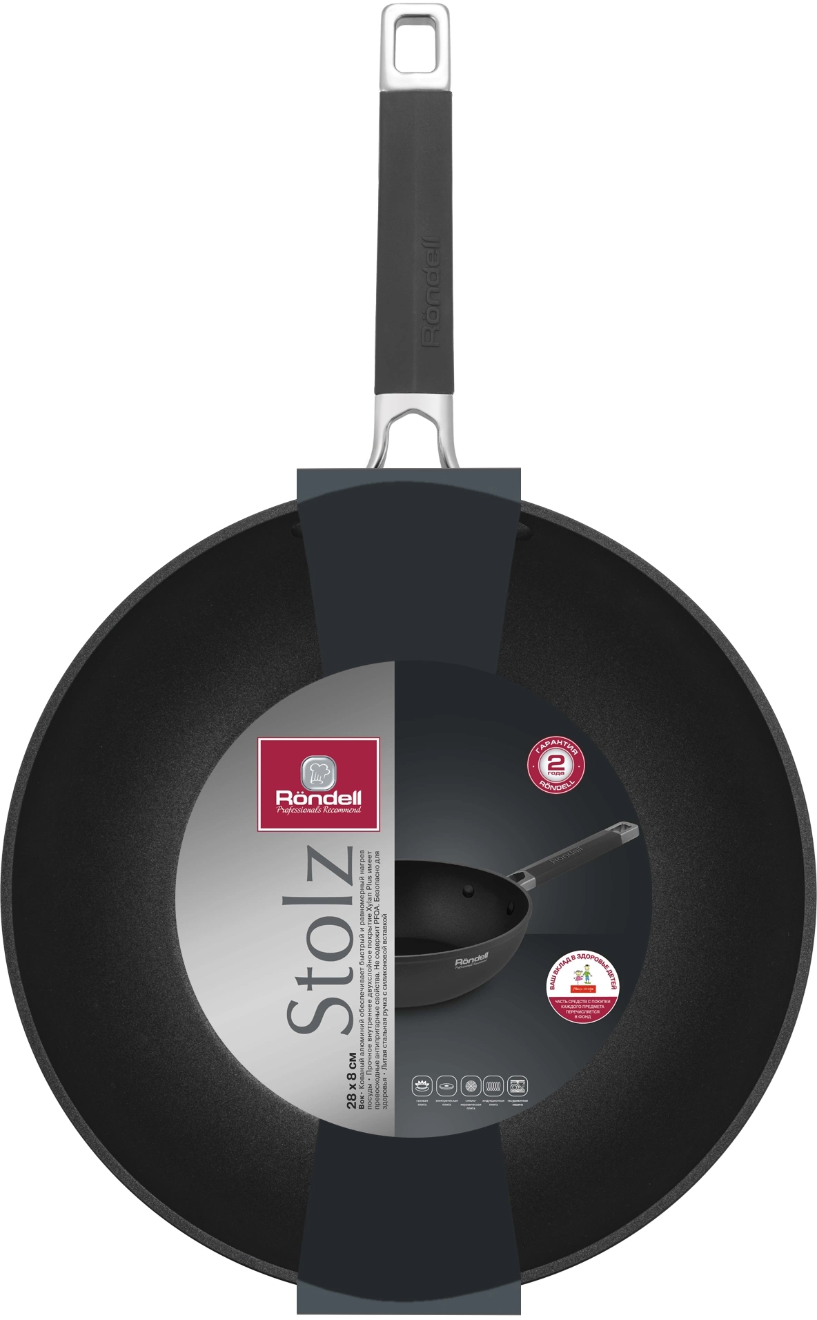 Сковорода ВОК (WOK) Rondell RDA-1771 Stolz круглая 28см покрытие: Xylan Plus ручка несъемная (без крышки) серый