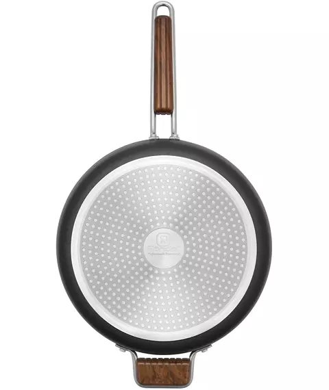 Сотейник, изготовленный из кованого алюминия, который известен своей высокой теплопроводностью, имеет прочное внутреннее двухслойное антипригарное покрытие Xylan® Plus, безопасное и экологичное. Для вока и сотейника предусмотрены крышки: их плоская форма способствует экономии места при хранении.