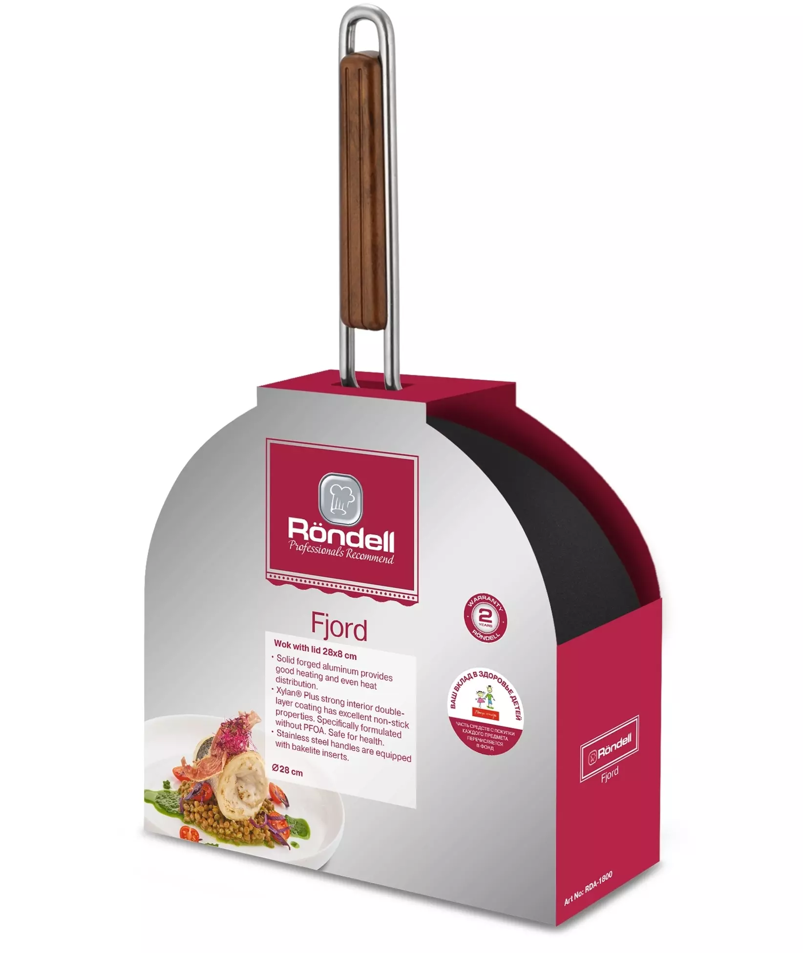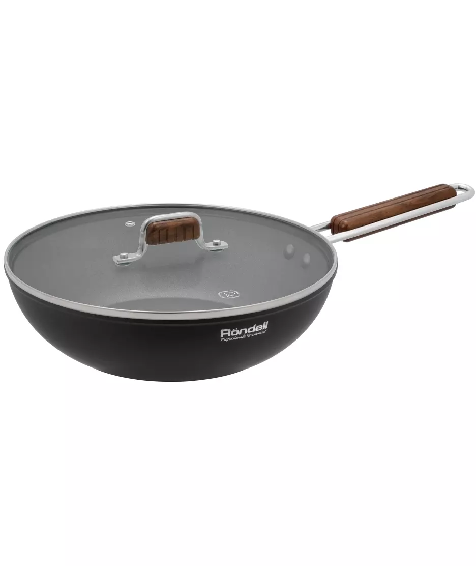 Сковорода ВОК (WOK) Rondell Fjord RDA-1800 круглая 28см покрытие: Xylan Plus ручка несъемная (с крышкой) черный [RDA-1800]