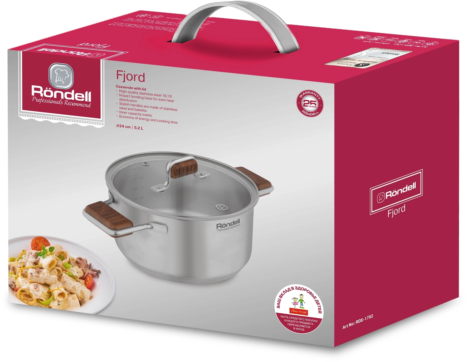 Кастрюля Rondell Fjord 5.2л. d=24см (с крышкой) стальной [RDS-1792]