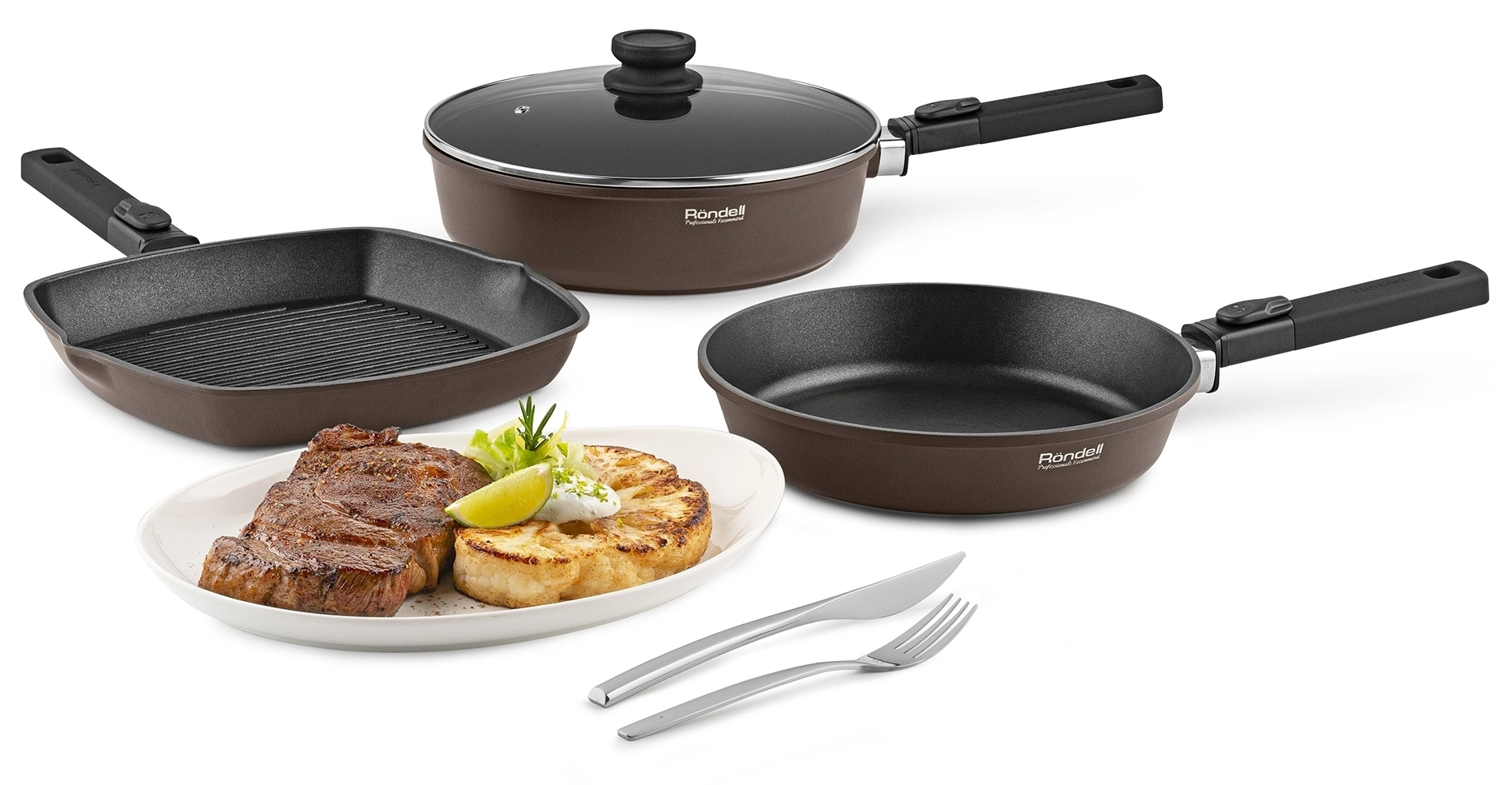 | Особенности | Аксессуары: эргономичные бакелитовые ручки с soft touch покрытием и силиконовыми вставками, препятствующими скольжению. Преимущества: специальное внешнее термостойкое покрытие для легкого ухода; Xylan® Plus – двухслойное, долговечное антипригарное покрытие для интенсивного использования. |