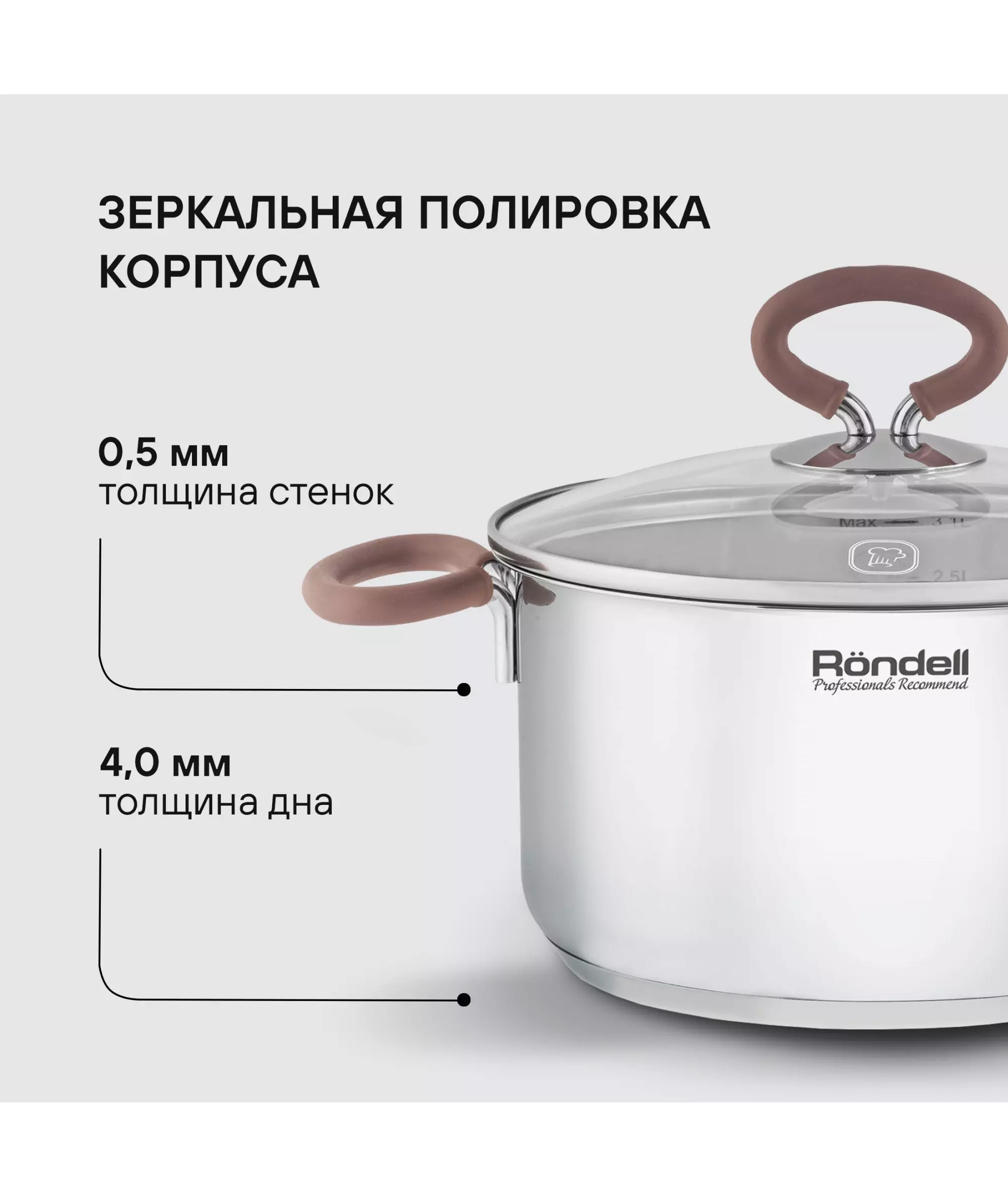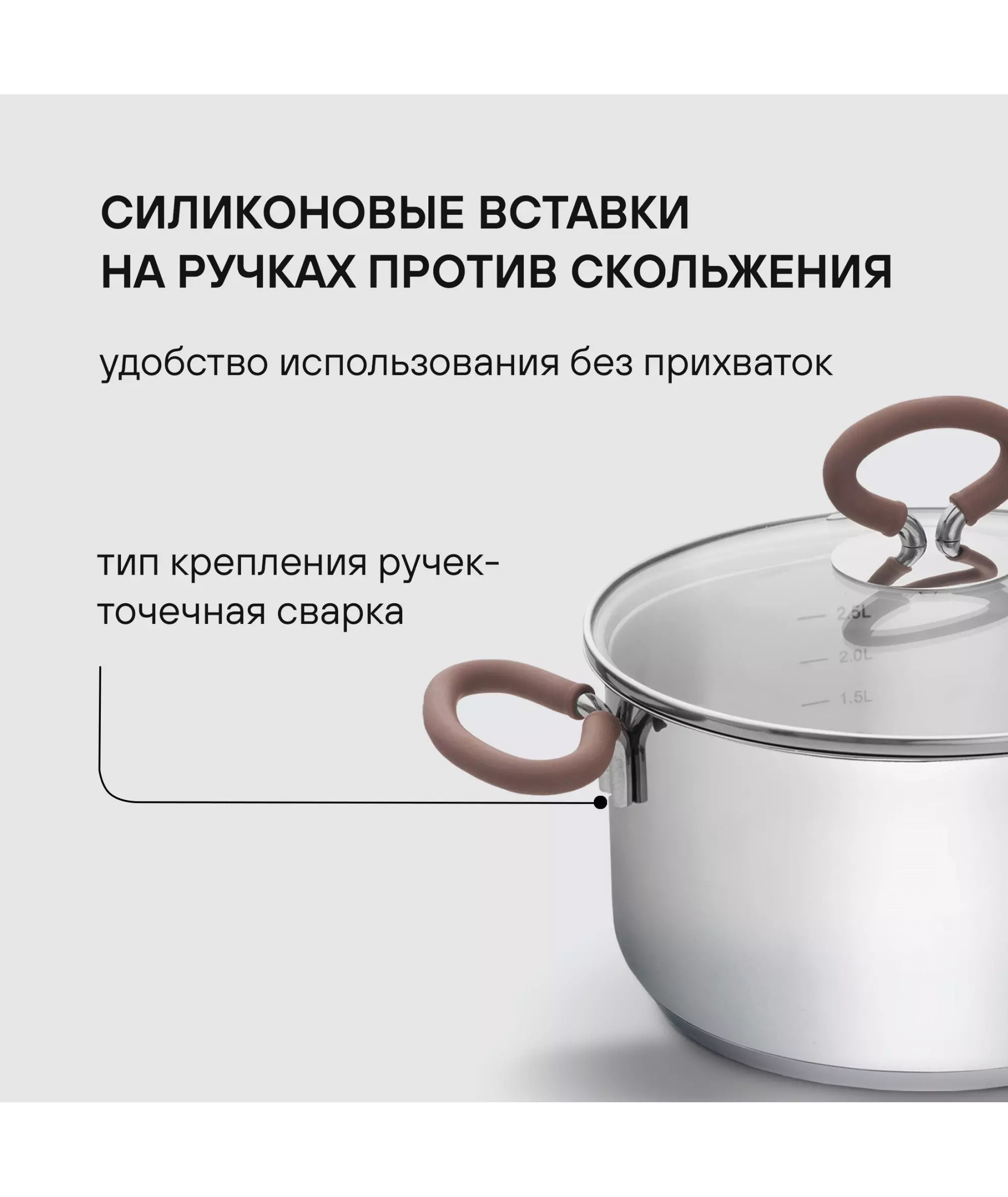 Как и сами предметы коллекции, все ручки изготовлены из высококачественной нержавеющей стали 18/10 и имеют силиконовые накладки цвета пепельной розы. Они не скользят даже во влажных руках и не нагреваются, поэтому прихватки вам не понадобятся. Посуда отличается особой надежностью и долговечностью.