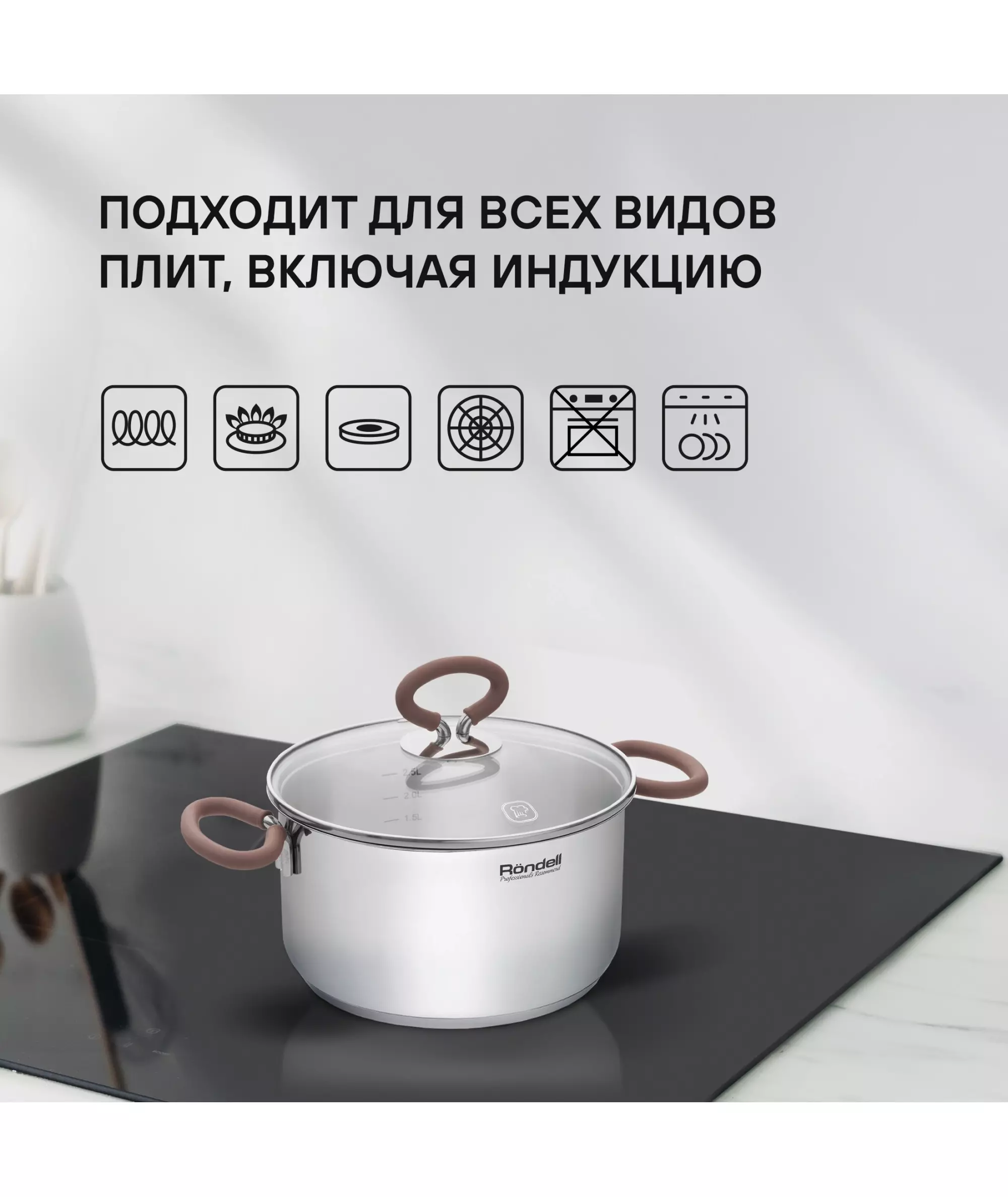 | Совместимые плиты | для газовых плит, для галогеновых плит, для индукционных плит, для стеклокерамических плит, для электрических плит |